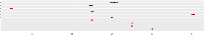 geom_point(aes(x=true_estimate, y=reorder(term, desc(term))), colour = 'red') +